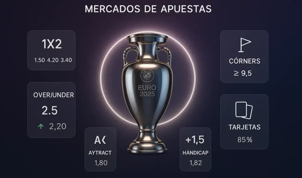 Llevo apostando en Eurocopas desde 2012 y te puedo decir algo con total certeza: los apostadores que solo usan el 1X2 son los que más dinero pierden a largo plazo. No porque el 1X2 sea malo, sino porque se están limitando al mercado más eficiente donde es más difícil tener ventaja. Los apostadores inteligentes saben que el dinero real está en los mercados secundarios, donde las casas dedican menos recursos a ajustar las cuotas y donde aparecen ineficiencias que puedes explotar.